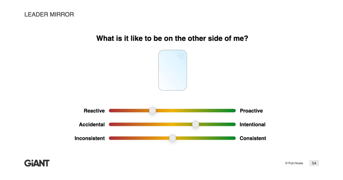 Then, ask yourselves each day if you are living proactively, intentionally, and consistently. Look into the Leader Mirror, and be honest with the reflection looking back at you. You won’t regret it when you see the broccoli in your teeth and are able to see clearly to remove it.